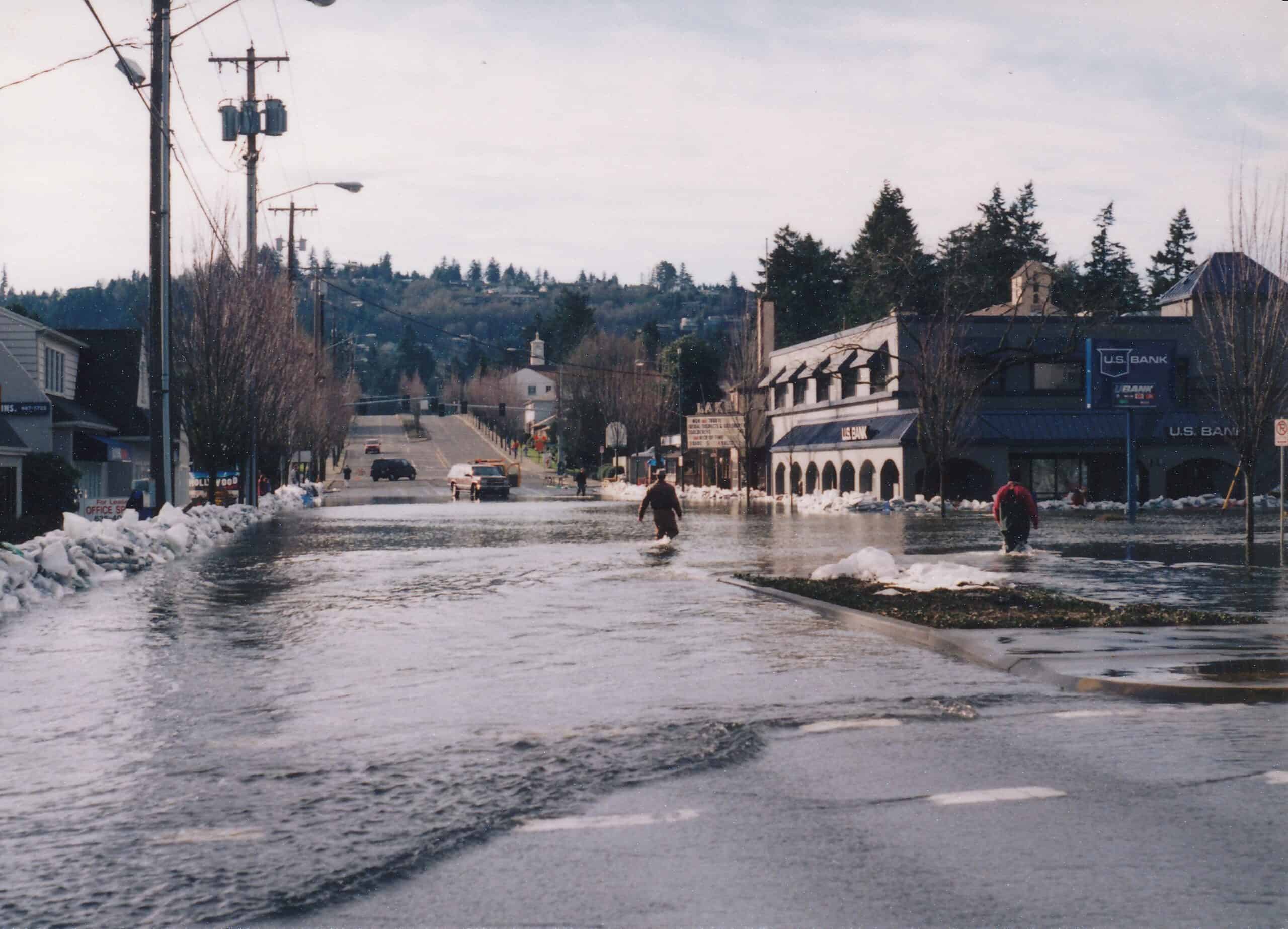 The Farmington water gauge recorded the highest river level over the last 100 years in February 1996 at 37.2 feet. The Tualatin River at Farmington is considered to be at flood stage at 32 feet. So, the river was a full five feet above flood stage in 1996. The 1996 flood caused significant property damage throughout the Willamette Valley and resulted in at least eight deaths. The flood damaged more than 100 buildings in Tualatin causing millions of dollars of property damage. The river also overflowed the Lake Oswego Canal Headgate causing significant property damage in Lake Oswego.